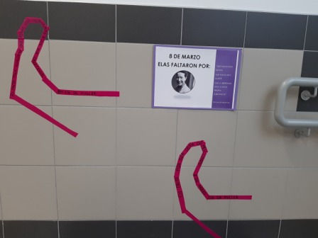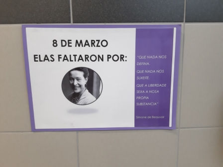 Para iso, realizáronse carteis con citas de autoras coñecidas e elaboráronse siluetas simbólicas con lemas e textos creados polo propio alumnado, material que foi disposto nos corredores do centro. Outras moitas reivindicacións escritas foron tamén recollidas nos cristais das portas principais do centro.